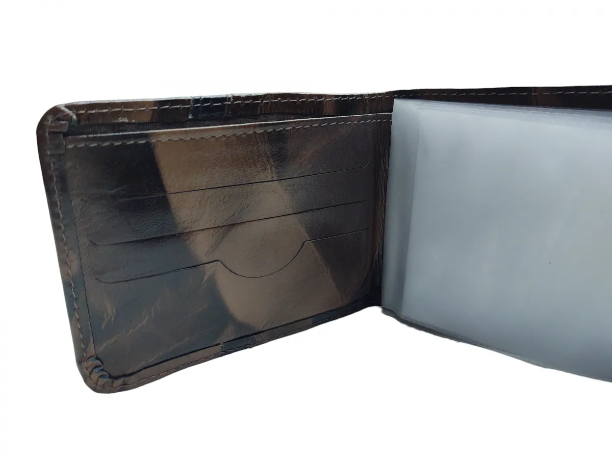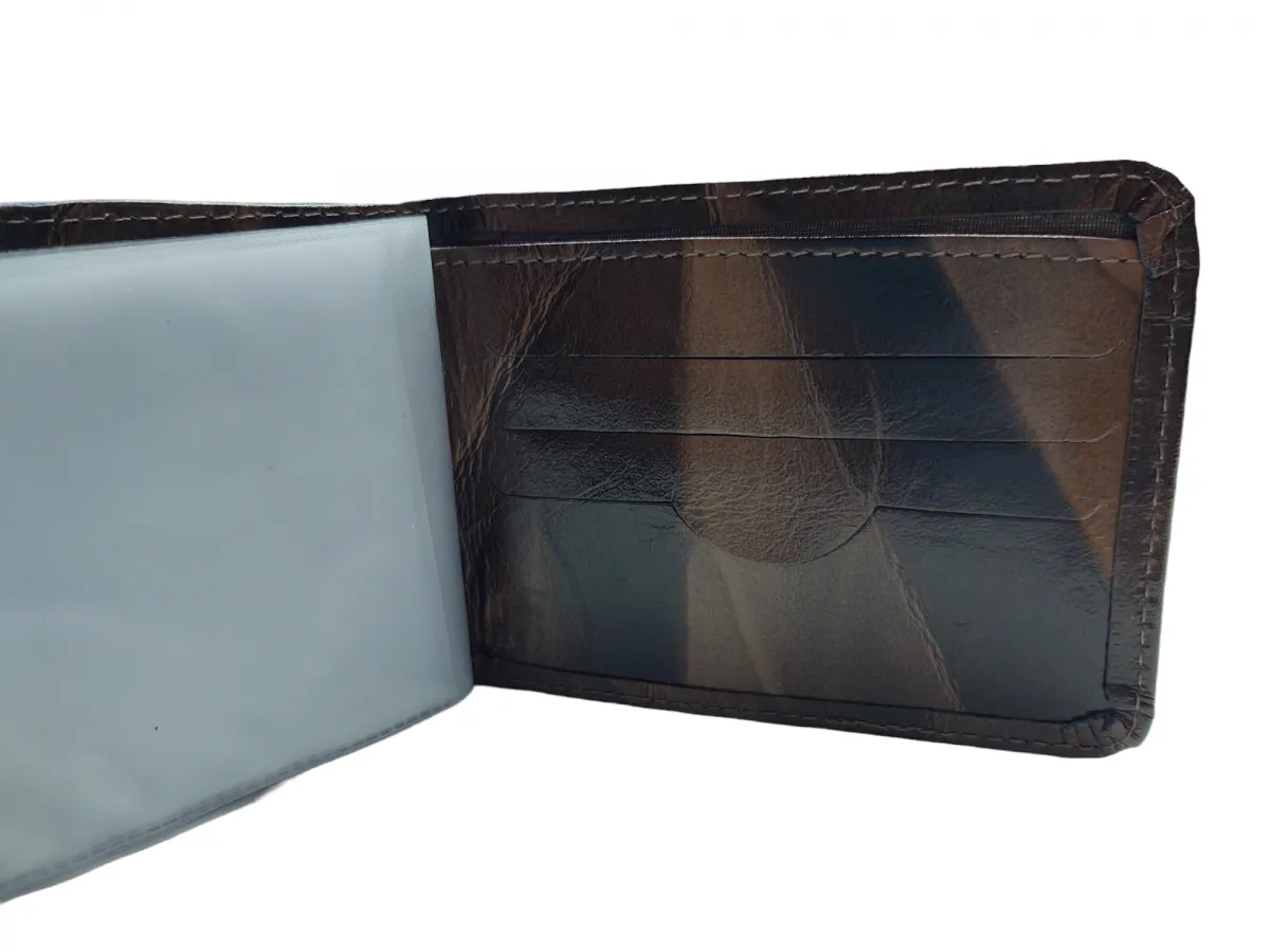 Com várias repartições, porta-cartões e documentos. Carteira feita com materiais e couro de alta qualidade!