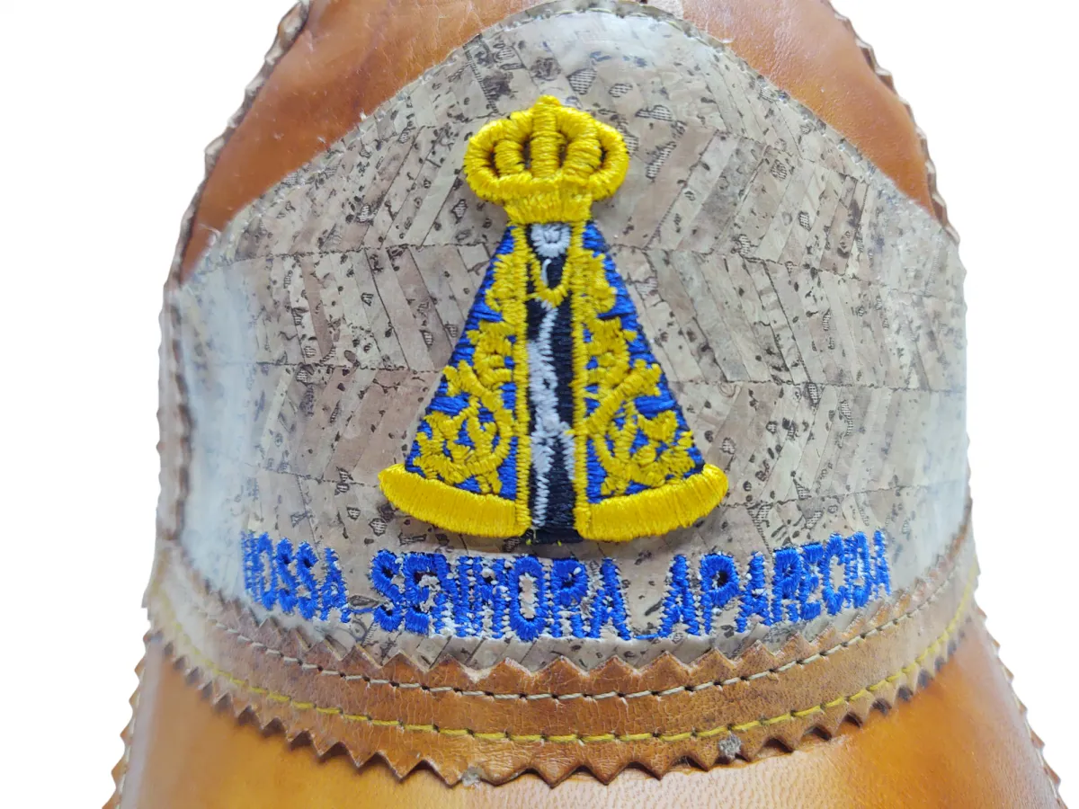 Boné Country Nossa Senhora Aparecida, fabricado em couro cru Legítimo, 100% artesanal.