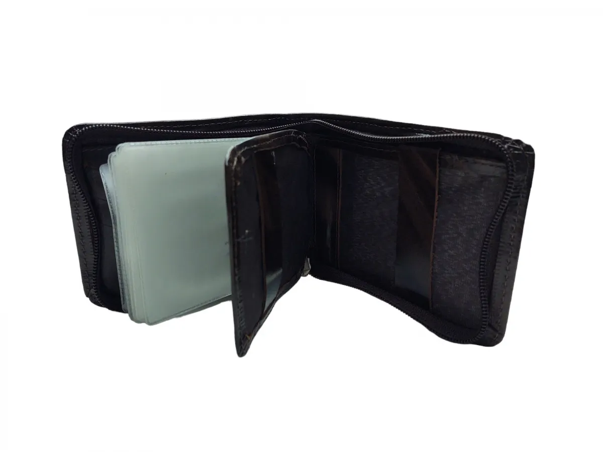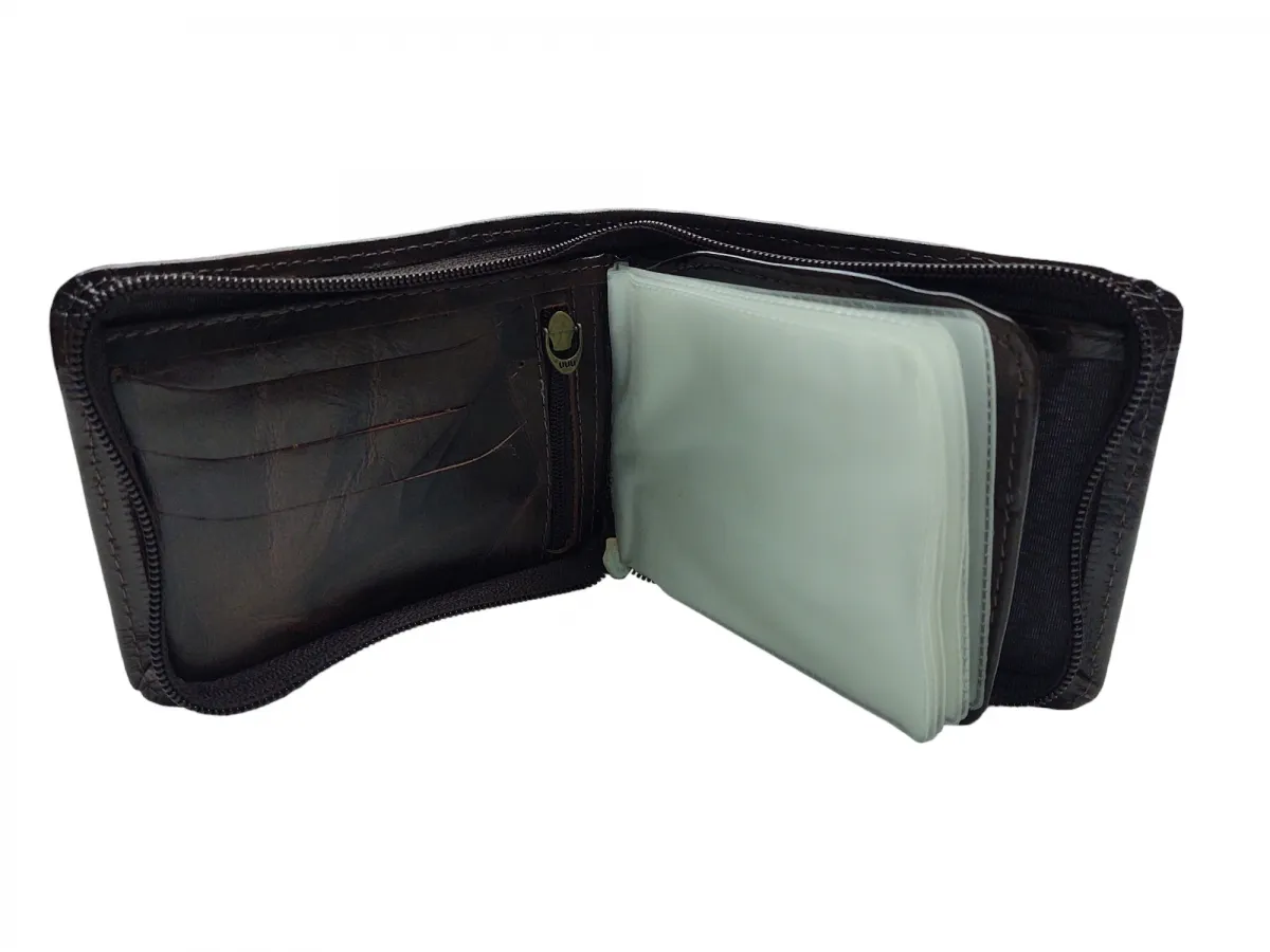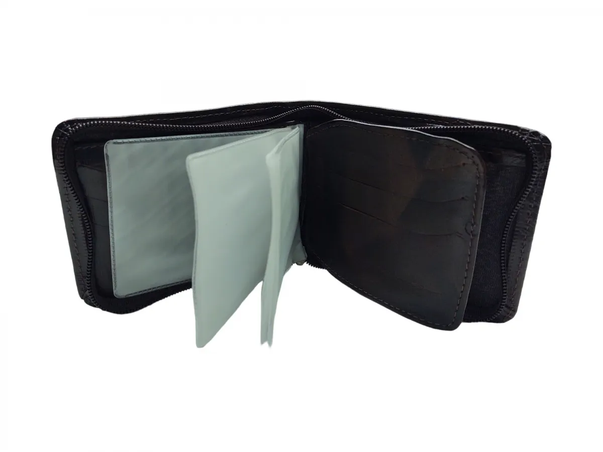 Carteira masculina fabricada em couro legítimo, macio e com fecho de zíper.