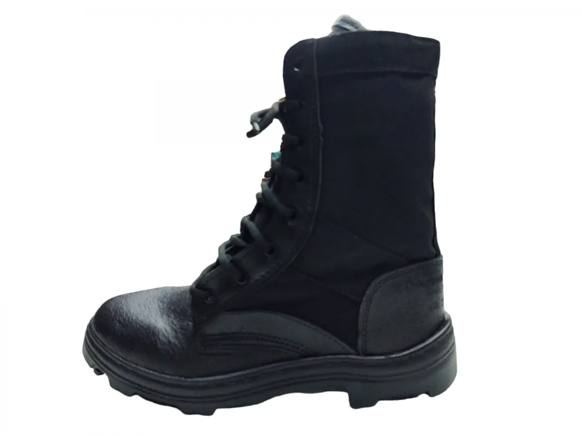 Coturno Militar fabricado em couro e lona, sola de borracha antiderrapante, colado prensado e costurado lateralmente. Palmilha de montagem fixada ao cabedal pelo sistema strobel, palmilha de limpeza removível. Fechamento frontal com atacadores de nylon e ilhóses.