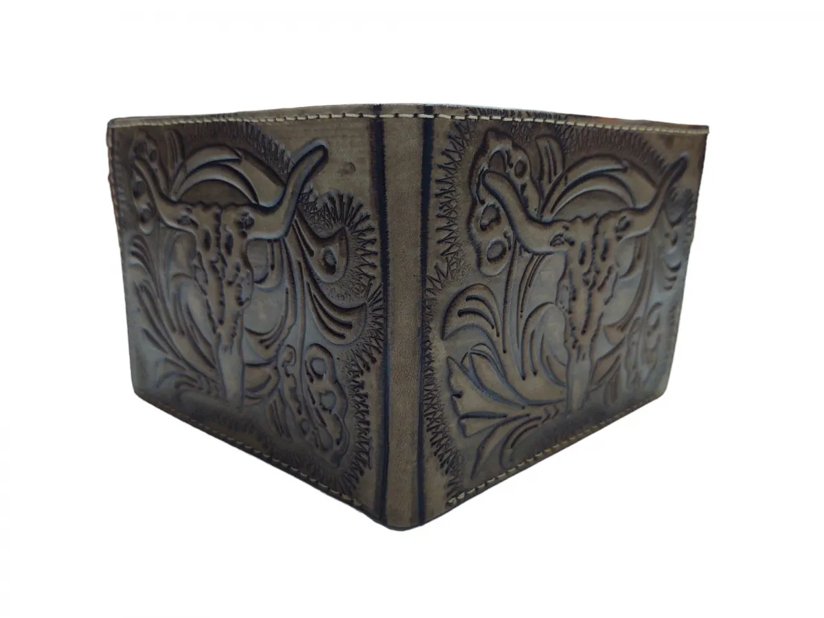 Ref: 9014 B - Carteira Country Cabeça de Boi Escura