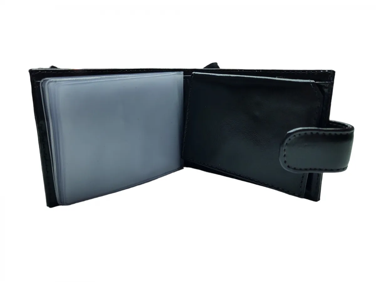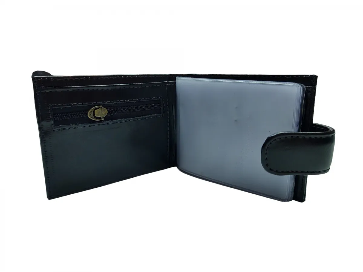 Ref: 9031 - Carteira de Couro Fecho de Botão Preta