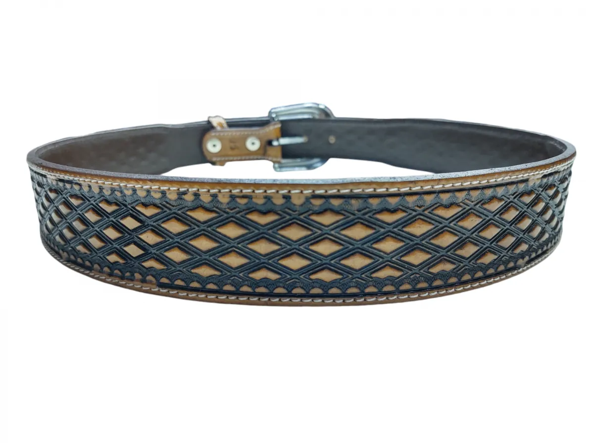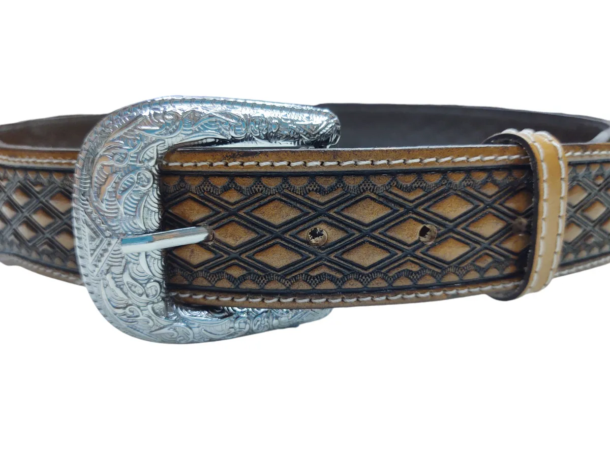 Cinto Country Master fabricado em couro legítimo, possui duplas costuras reforçadas e com um lindo desenho em formatos de losangos no couro e fivela de metal prata removível de excelente qualidade.